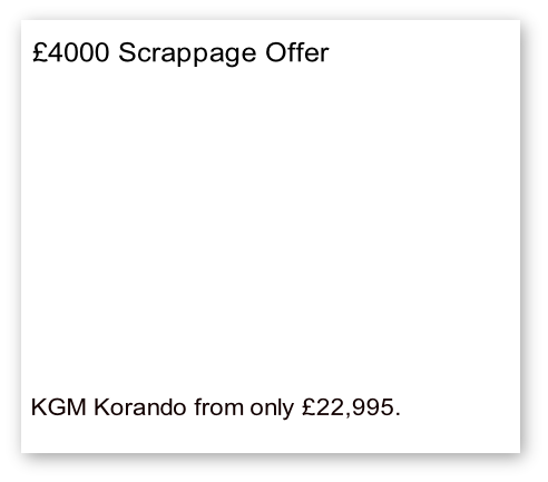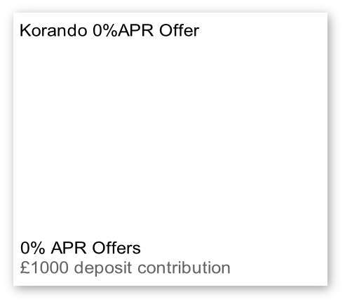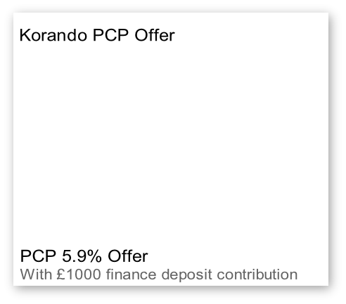 HP 5.9% Offer With £1000 finance deposit contribution Korando HP Offer Korandoi HP Offer Korando PCP Offer Korando 0% APR Offer Motability Korando Scrappage Offer